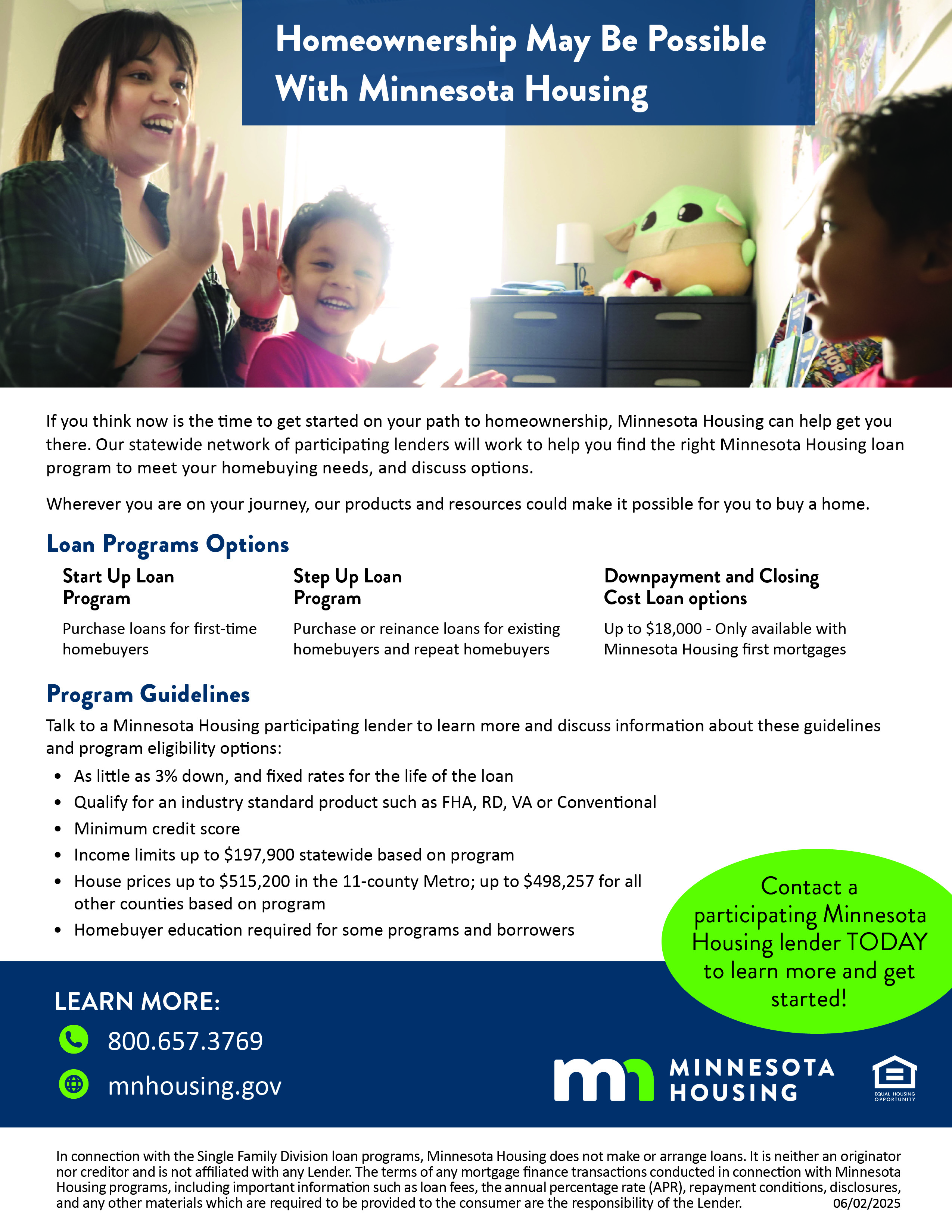 Minnesota Housing offers marketing materials for participating lenders to market our programs to your borrowers and housing industry partners.